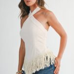 Top halter con flecos en color crema
