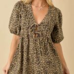 Romper de mezclilla con estampado de leopardo, pliegues y lazo frontal